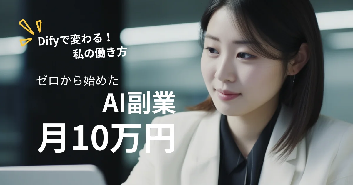 この記事では、ノーコードAIツール「Dify」を活用して、働き方を大きく変え、月10万円の副業収入を達成した、Bさん(30代・女性)のストーリーをご紹介します。